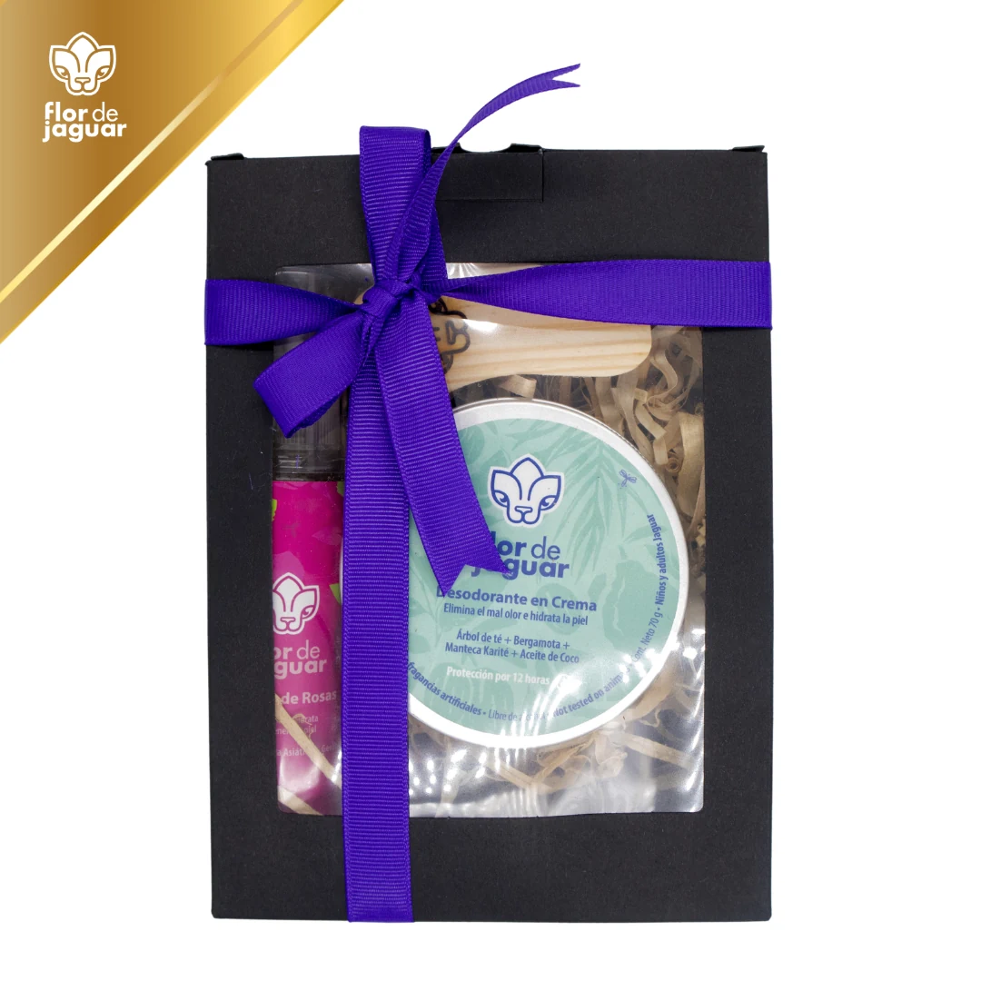 Cuidarte también es parte de cuidarlo todo. Un kit pensado para quien merece un momento de atención real. Incluye: Desodorante natural en crema, palita aplicadora y Tónico Facial.