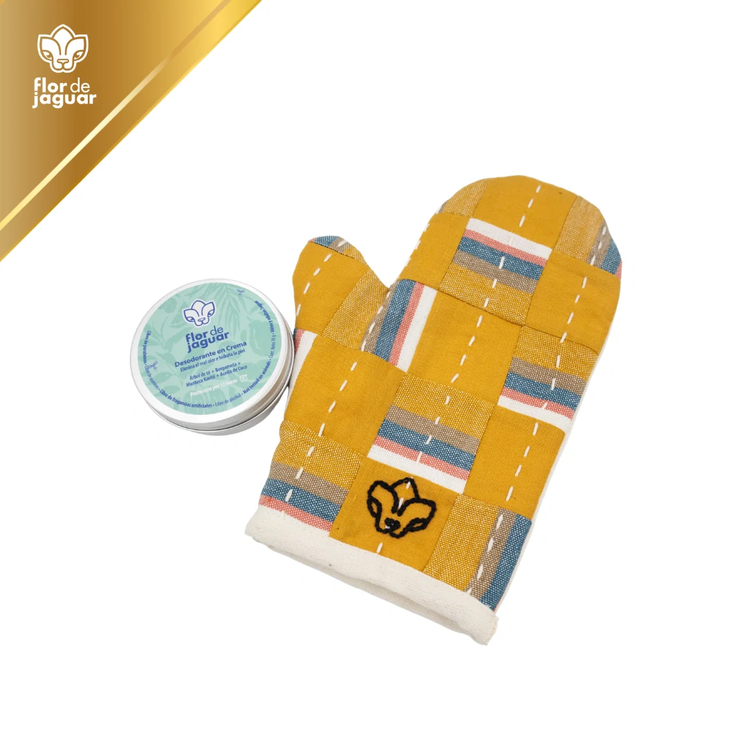 Porque su forma de cuidar también tiene estilo. Una combinación de artesanía mexicana y cuidado natural para mamá. Incluye: Guante Denisse Kuri y Desodorante natural en crema.