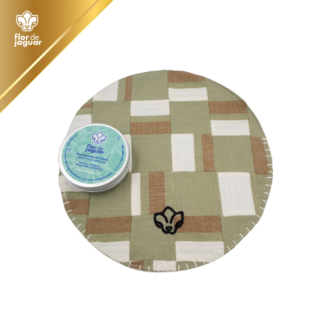 Porque su forma de cuidar también tiene estilo. Una combinación de artesanía mexicana y cuidado natural para mamá. Incluye: Tortillero Denisse Kuri y Desodorante natural en crema.