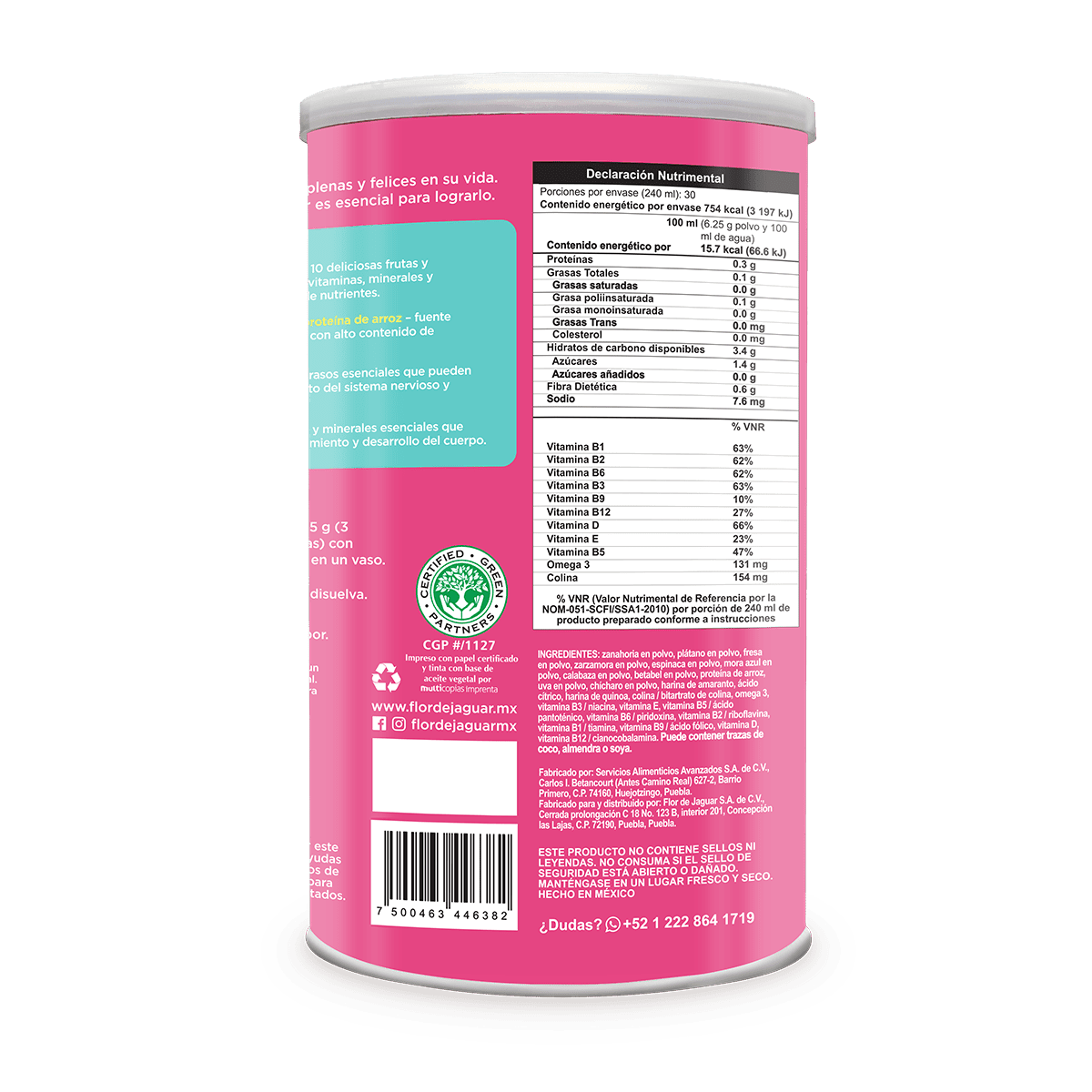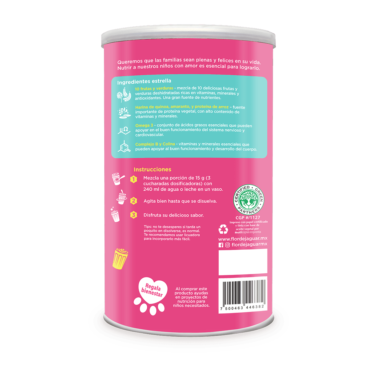 Bebida en polvo que ayuda al desarrollo óptimo de los niños, favorece el aprendizaje, atención y concentración.