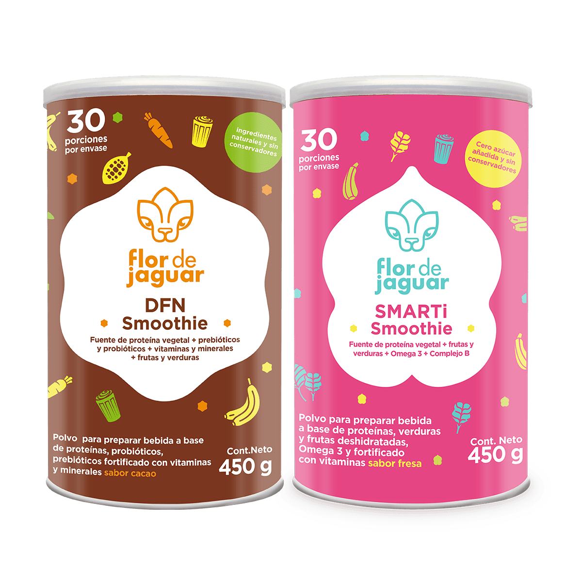 El kit contiene los 2 Smoothies Flor de Jaguar: